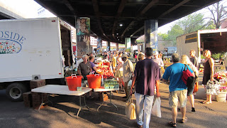 Being Sunday, today was farmers market day for us, and despite having to work later in the day, Kathleen and I ran down to the market on our bikes this morning. It was super hot for 7:00AM, already in the mid 80's on the way to 100+ and the humidity was on the rise as well. Here is Kathleen rolling along on her city bike on the way there.